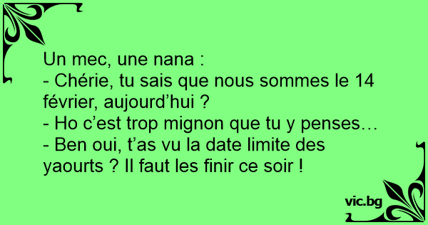 - Chérie, tu sais que nous sommes le 14 février, aujourd’hui ?