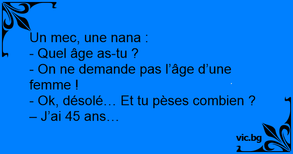 - Ok, désolé… Et tu pèses combien ? – J’ai 45 ans…