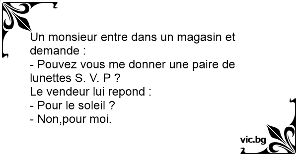 - Pouvez vous me donner une paire de lunettes S. V. P ?
