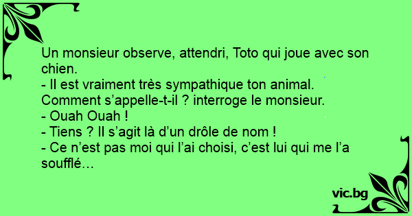 - Il est vraiment très sympathique ton animal. Comment s’appelle-t-il ? interroge le monsieur.