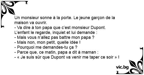 - « Je suis sûr que Dupont va venir me taper ce soir » !