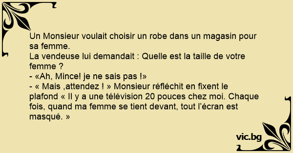 La vendeuse lui demandait : Quelle est la taille de votre femme ?