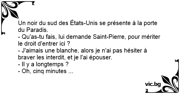 Un noir du sud des États-Unis se présente à la porte du Paradis.