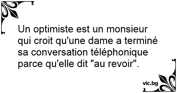 Un optimiste est un monsieur qui croit qu'une dame a terminé sa conversation téléphonique parce qu'elle dit "au revoir".