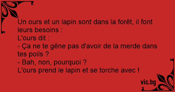 Un ours et un lapin sont dans la forêt, il font leurs besoins :