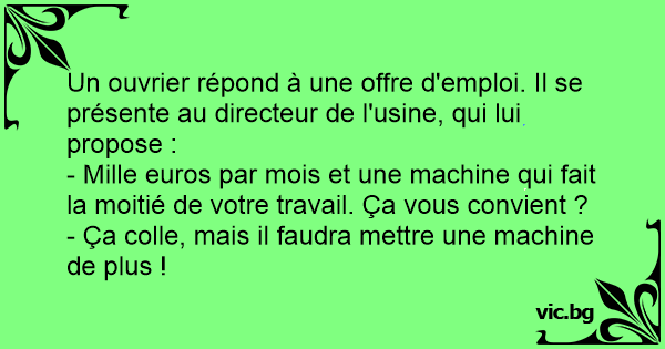 Un ouvrier répond à une offre d'emploi. Il se présente au directeur de l'usine, qui lui propose :
