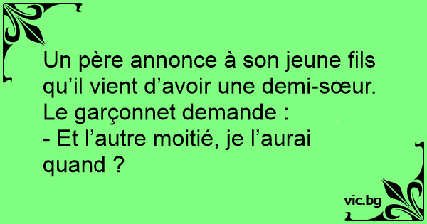 Un père annonce à son jeune fils qu’il vient d’avoir une demi-sœur. Le garçonnet demande :