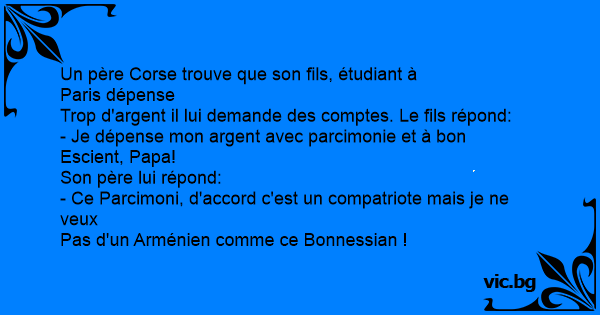 Trop d'argent il lui demande des comptes. Le fils répond:
