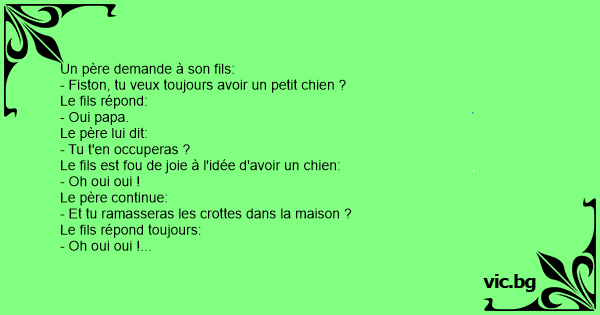 - Et bien, pour t'entraîner j'ai chié dans ta chambre, vas nettoyer !