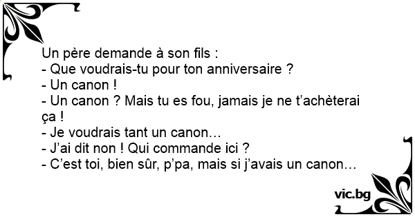 - C’est toi, bien sûr, p’pa, mais si j’avais un canon…