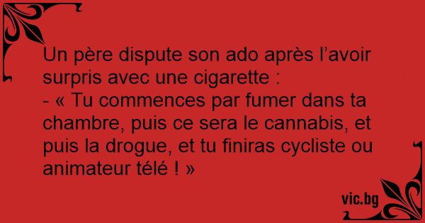 - « Tu commences par fumer dans ta chambre, puis ce sera le cannabis, et puis la drogue, et tu finiras cycliste ou animateur télé ! »
