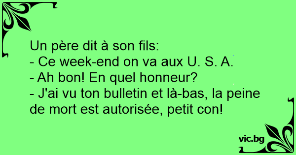 - J'ai vu ton bulletin et là-bas, la peine de mort est autorisée, petit соn!