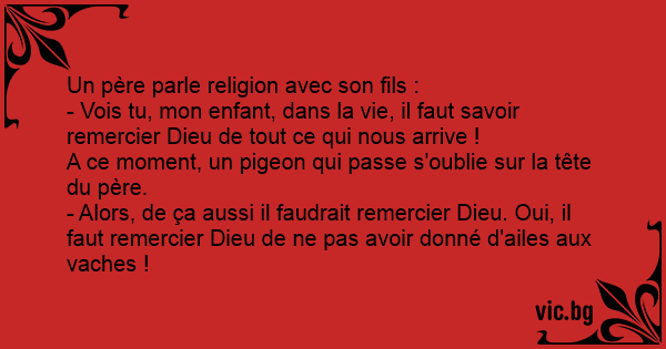 - Vois tu, mon enfant, dans la vie, il faut savoir remercier Dieu de tout ce qui nous arrive !