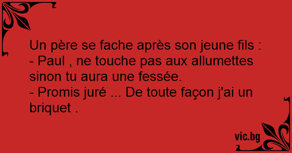 - Paul , ne touche pas aux allumettes sinon tu aura une fessée.