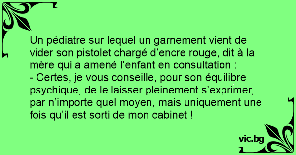 Un pédiatre sur lequel un garnement vient de vider son pistolet chargé d’encre rouge, dit à la mère qui a amené l’enfant en consultation :