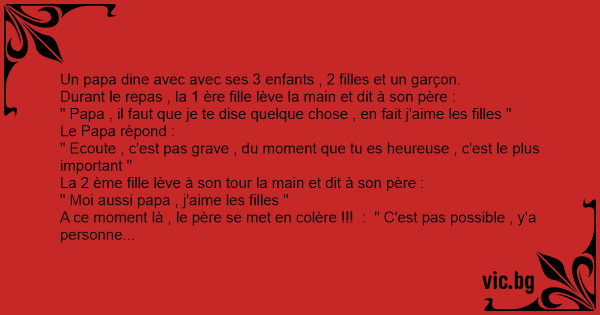 Durant le repas , la 1 ère fille lève la main et dit à son père :
