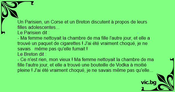 Un Parisien, un Corse et un Breton discutent à propos de leurs filles adolescentes...