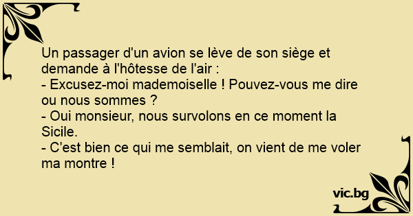 Un passager d'un avion se lève de son siège et demande à l'hôtesse de l'air :