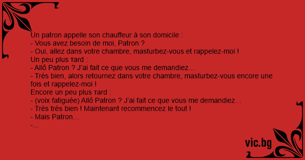 - (voix fatiguée) Allô Patron ? J’ai fait ce que vous me demandiez…