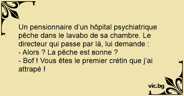 Un pensionnaire d’un hôpital psychiatrique pêche dans le lavabo de sa chambre. Le directeur qui passe par là, lui demande :