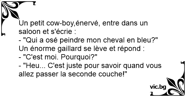 Un petit соw-boy,énervé, entre dans un saloon et s'écrie :