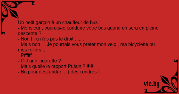 - Monsieur , pourais-je conduire votre bus quand on sera en pleine descente ?
