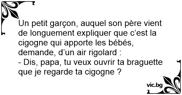 - Dis, papa, tu veux ouvrir ta braguette que je regarde ta cigogne ?