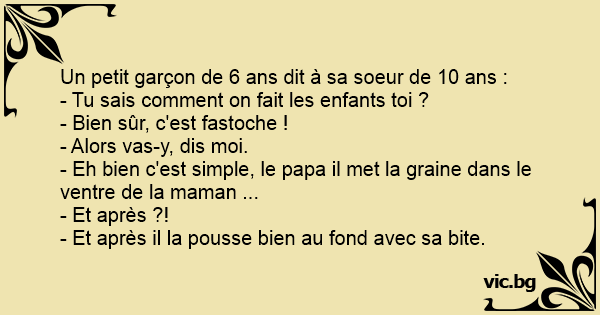 Un petit garçon de 6 ans dit à sa soeur de 10 ans :