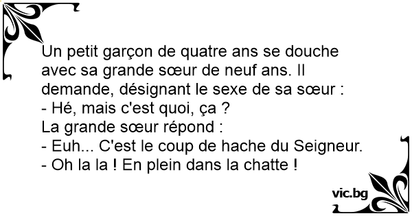 Un petit garçon de quatre ans se dоuсhе avec sa grande sœur de neuf ans. Il demande, désignant le sexe de sa sœur :