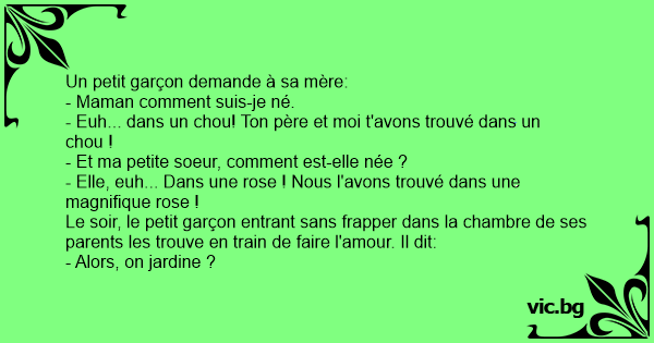 - Euh... dans un chou! Ton père et moi t'avons trouvé dans un chou !