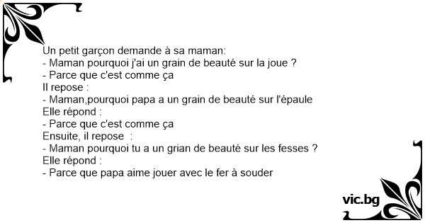 - Maman pourquoi tu a un grian de beauté sur les fesses ?