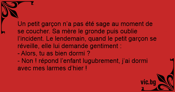 - Non ! répond l’enfant lugubrement, j’ai dormi avec mes larmes d’hier !