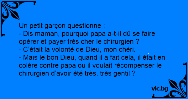 - Dis maman, pourquoi papa a-t-il dû se faire opérer et payer très cher le chirurgien ?