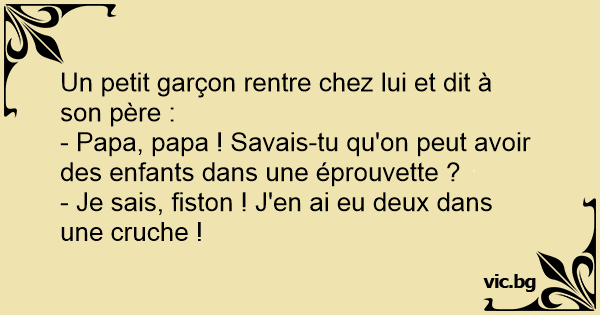 - Papa, papa ! Savais-tu qu'on peut avoir des enfants dans une éprouvette ?