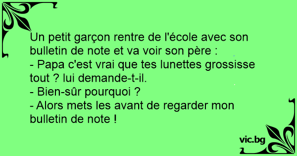 Un petit garçon rentre de l'école avec son bulletin de note et va voir son père :