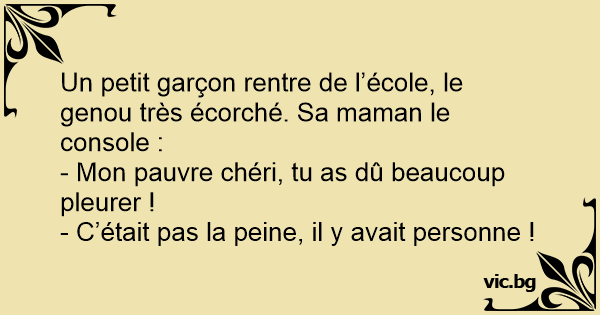 Un petit garçon rentre de l’école, le genou très écorché. Sa maman le console :