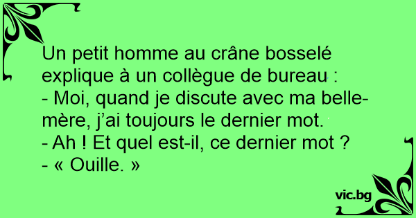 - Moi, quand je discute avec ma belle-mère, j’ai toujours le dernier mot.
