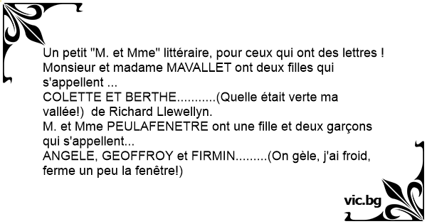 Un petit "M. et Mme" littéraire, pour ceux qui ont des lettres !