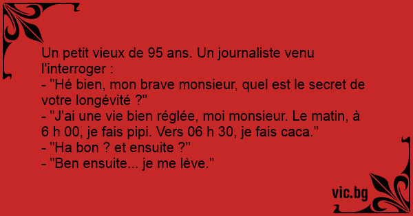 - "Hé bien, mon brave monsieur, quel est le secret de votre longévité ?"