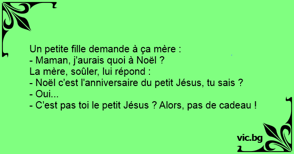 - C'est pas toi le petit Jésus ? Alors, pas de cadeau !
