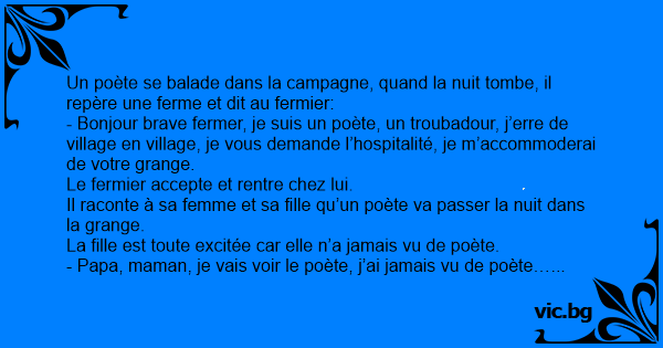 Un poète se balade dans la campagne, quand la nuit tombe, il repère une ferme et dit au fermier: