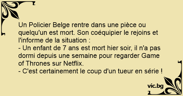 Un Policier Belge rentre dans une pièce ou quelqu'un est mort. Son coéquipier le rejoins et l'informe de la situation :