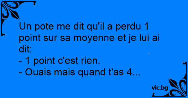 Un pote me dit qu'il a perdu 1 point sur sa moyenne et je lui ai dit: