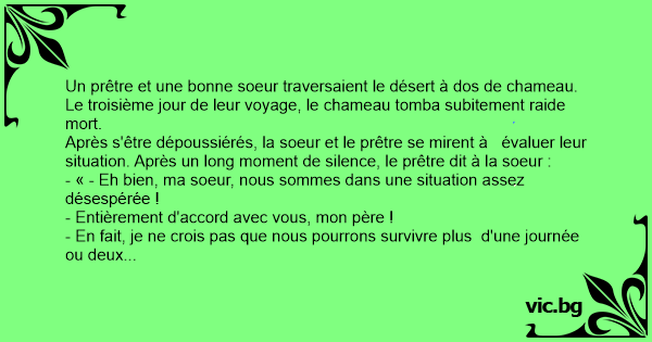 Un prêtre et une воnnе soeur traversaient le désert à dos de chameau.