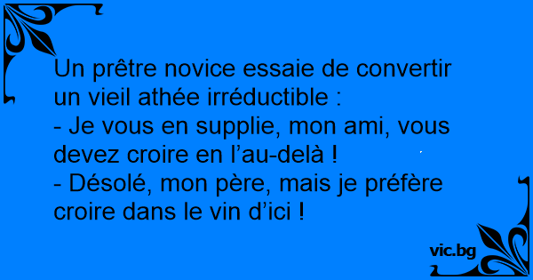 Un prêtre novice essaie de convertir un vieil athée irréductible :