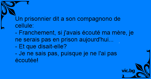 - Franchement, si j'avais écouté ma mère, je ne serais pas en prison aujourd'hui...