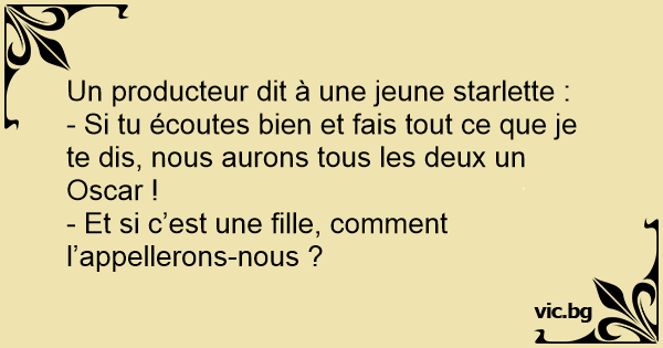 - Si tu écoutes bien et fais tout ce que je te dis, nous aurons tous les deux un Oscar !