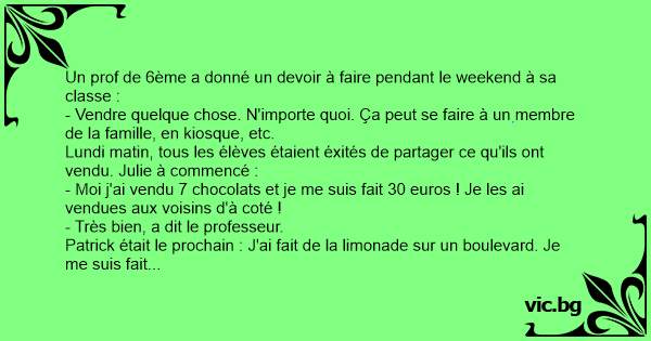 Un prof de 6ème a donné un devoir à faire pendant le weekend à sa classe :