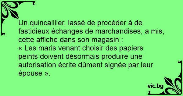« Les maris venant choisir des papiers peints doivent désormais produire une autorisation écrite dûment signée par leur épouse ».