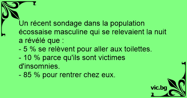 Un récent sondage dans la population écossaise masculine qui se relevaient la nuit a révélé que :